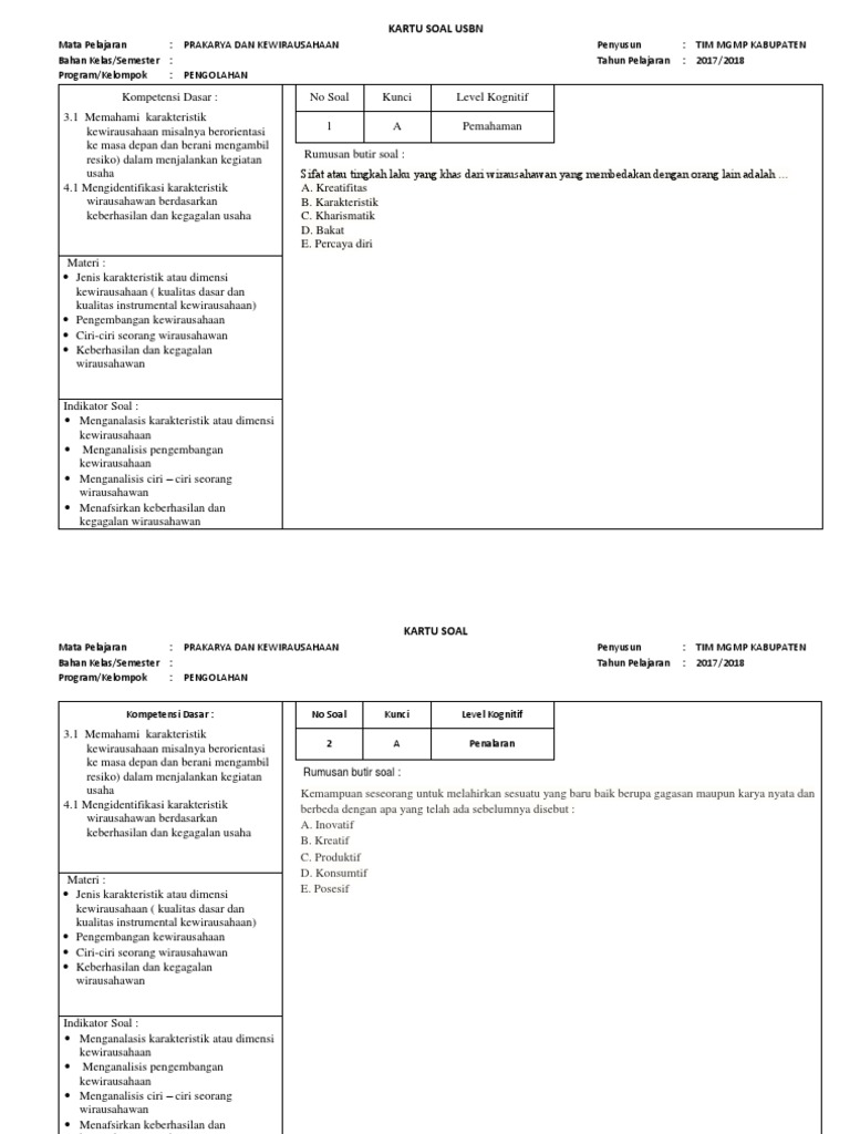 Ujian Praktek Kewirausahaan Siswa Diminta Praktek Berdagang Tribun Sumsel from cdn-2.tstatic.net Soal latihan ulangan 3 prakarya kelas vii. Segala sesuatu yang berasal dari sumber hayati produk pertanian, perkebunan, kehutanan, perikanan, peternakan, perairan, dan air. Soal pilihan ganda berilah tanda silang ( x ) pada huruf a, b, c, dan d pada jawaban yang benar ! Kompetensi dasar ujian praktek prakarya. Membuat makanan dan minuman dari bahan sayuran. Latihan soal prakarya pokok bahasan pengolahan kelas 8 1. Tulis namamu di sudut kanan atas 2. Soal diatas berisikan 45 soal pilihan ganda, 5 soal essay, dimana soal diatas tidak dilengkapi dengan kunci jawaban, jadi anda harus mencari jawabannya sendiri ya.